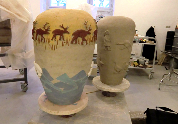 Søjlen: Anette Brix undersøger ornamentet med henblik på at blive en integreret del af en sammenhængende vækstbevægelse opad. Relieffet: Toni Larsen undersøger rummet og fladens struktur. En scene er sat, rummet er modeleret ind i figurerne. Der er en linje, tiden, som figurerne er til stede i og som rummer en fysisk begivenhed.Krukken: Jens Bohr udforsker monumentaliteten og den fragmentariske brug af elementer fra naturen: ugle – hest – ørn, indsat som ornamenter på alle dele. Willumsens geometriske grundformer: Tine Hecht eksperimenterer med at udskære blade og blomster stramt, som draperes i uendelige fletværk omkring forskellige hovedformer som f.eks. store vaser.