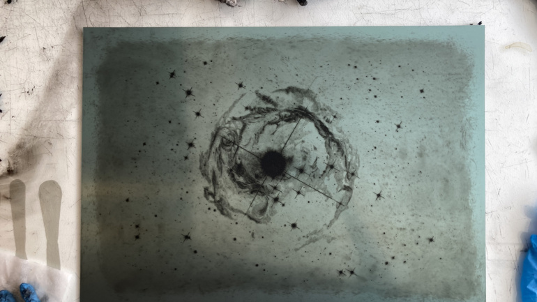Om kunstnerne Lise Kjær og Gina Hedegaard Nielsens installation “Flora Danica set fra neden” i BUNKEREN, Kongens Have, København.